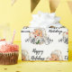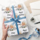 Papel de envolver de Santa Claus a la antigua usanza con fondo blanco y un ilustracion de estilo retro vintage. Todo el texto es editable, el ejemplo incluye las citas "Feliz Navidad", "Felices Fiestas", y "un regalo para ti" debajo de la cara de Santa. Envoltura de regalo para cualquier persona.