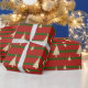 Navidades modernos, retro, rojos y verdes envolviendo papel con un lindo patrón de pino único.