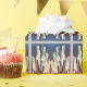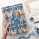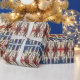 Un Navidad retro diseño de suéter de copo de nieve con un borde de cinta gris sobre el diseño del artista Jason Girard.