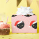 Este diseño tiene un bonito gato negro con sombrero de Santa, de fondo rosa pastel.
