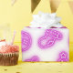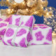 Un patrón impecable de elementos de Navidades Neon Pink, incluyendo árboles de Navidad, campanas, medias y ornamentos sobre un fondo blanco