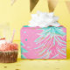 Los brillantes y alegres árboles de Navidad verdes de menta, adornados con regalos rosas, cubren este alegre envoltorio de regalo rosa.