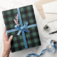 Este Navidad presenta un diseño de papel de envoltura vacacional con un estilo rústico y moderno de casa de campo con pinturas verdes de pino y chapa de búfalo negro con motivos a pequeña escala.