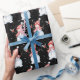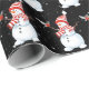 Hombre de nieve de vacaciones con un pájaro con copos de nieve sobre un fondo negro. Se puede cambiar el color de fondo.