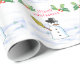 Serie de navidades Navidades divertidos envolviendo papel con un divertido muñeco de nieve, hojas huecas y bayas rojas cubiertas de nieve. Un fondo de abetos y nevadas completa la escena. Perfecto para envolver esos regalos de los Navidades para alguien muy especial!