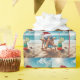 Una estrella de mar con sombrero de Santa y gafas de sol se relaja en una tumbona junto al océano con un cóctel