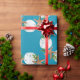 Navidades de calidad envolviendo papel en un rollo con el diseño de "mariscos de playa" en dólares de estrellas y arena. color de fondo azul bonito con conchas de concha y holly en marrón, blanco y verde haciendo un patrón de corona circular. Si no ve un color de fondo que le guste, puede elegir el suyo en el área "personalizar más adelante".
