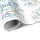 Envuelve los regalos de vacaciones de tus Navidades en una atmósfera tropical y costera con SEAS & GREETINGS en un elegante diseño de escritura caligráfica con diseño de tipografía acentuado con estrellas de colores azul turquesa en un fondo blanco editable. ASISTENCIA: Comuníquese con el diseñador a través de Zazzle Chat o makeitaboutyoustore@gmail.com si desea modificar este diseño o en otro producto.