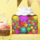 Navidades envolviendo papel con brillantes decoraciones de árboles navideños en colores brillantes de amarillo, rojo, verde, rosa y turquesa. Todos los elementos de diseño están impresos.