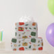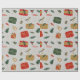 Papel de regalo navideño ilustrado gris rojo y dor