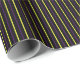 Este negro con papel envuelto de rayas amarillas y violetas es genial para Halloween pero también trabajaría para regalos en cualquier época del año. ¡Este periódico es un sueño para destacarse entre la multitud!