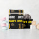 Este diseño de papel envolvente incluye un mensaje como "¡11º CUMPLEAÑOS DE NOMBRE PRIMERO!", con el "11º" con un aspecto de color falso/imitación de color dorado, y con el nombre y el "CUMPLEAÑOS" en un tipo de letra divertido y audaz. El nombre es personalizable, y el fondo es negro de color. El envolvimiento de papel como este podría ser usado cuando se le dan regalos de cumpleaños a alguien en celebración de su undécimo cumpleaños. [~Z0000203]
