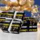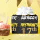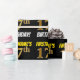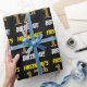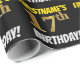 Este diseño de papel envolvente incluye un mensaje como "¡CUMPLEAÑOS 17 DE FIRSTNAME!", en el que el "decimoséptimo" tiene un aspecto de color falso/imitación de color dorado, y con el nombre y el "CUMPLEAÑOS" en un tipo de letra divertido y audaz. El nombre es personalizable, y el fondo es negro de color. El envolvimiento de papel como este podría ser usado cuando se le dan regalos de cumpleaños a alguien en celebración de su decimoséptimo cumpleaños. [~Z0000203]