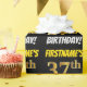 Este diseño de papel envolvente incluye un mensaje como "¡EL CUMPLEAÑOS 37 DE FIRSTNAME!", en el que el "37" tiene un aspecto de color falso/imitación dorado, y con el nombre y el "CUMPLEAÑOS" en un tipo de letra divertido y audaz. El nombre es personalizable, y el fondo es negro de color. El envolvimiento de papel como este podría ser usado cuando se le dan regalos de cumpleaños a alguien en celebración de sus 37 años. [~Z0000203]