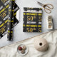 Este diseño de papel envolvente incluye un mensaje como "¡50 CUMPLEAÑOS DE NOMBRE PRIMERO!", con el "50" con un aspecto de color falso/imitación de color dorado, y con el nombre y el "CUMPLEAÑOS" en un tipo de letra divertido y audaz. El nombre se puede personalizar y el fondo es negro de color. El papel envuelto como este podría ser usado cuando se le dan regalos de cumpleaños a alguien en celebración de su cincuentenario. [~Z0000203]