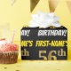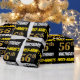 Este diseño de papel envolvente incluye un mensaje como "¡56º CUMPLEAÑOS!", con el "56º" con un aspecto de color falso/imitación dorado, y con el nombre y el "CUMPLEAÑOS" en un tipo de letra divertido y audaz. El nombre es personalizable, y el fondo es negro de color. El envolvimiento de papel como este podría ser usado cuando se le dan regalos de cumpleaños a alguien en celebración de su cincuenta sexto cumpleaños. [~Z0000203]