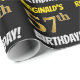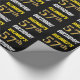Este diseño de papel envolvente incluye un mensaje como "¡57º CUMPLEAÑOS DE REGINALD!", en el que el "57º" tiene un aspecto de color falso/imitación dorado, y con el nombre y el "CUMPLEAÑOS" en un tipo de letra divertido y audaz. El nombre se puede personalizar y el fondo es negro de color. El papel envuelto como este podría ser usado cuando se le dan regalos de cumpleaños a alguien en celebración de sus cincuenta y siete años. [~Z0000203]
