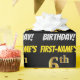 Papel De Regalo Negro, Faux/Imitation Gold, "6º CUMPLEAÑOS"
