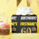 Este diseño de papel envolvente incluye un mensaje como "¡EL CUMPLEAÑOS 60 DE FIRSTNAME!", en el que el "60" tiene un aspecto de color falso/imitación dorado, y con el nombre y el "CUMPLEAÑOS" en un tipo de letra divertido y audaz. El nombre es personalizable, y el fondo es negro de color. El papel envuelto como este podría ser usado cuando se le dan regalos de cumpleaños a alguien en celebración de su sexagésimo cumpleaños. [~Z0000203]