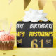Este diseño de papel envolvente incluye un mensaje como "¡FIRSTNAME’S 61st BIRTHDAY!", con el "61st" con un aspecto de color falso/imitación de oro, y con el nombre y "BIRTHDAY" en un tipo de letra divertido y audaz. El nombre es personalizable, y el fondo es negro de color. El papel envuelto como este podría ser usado cuando se le dan regalos de cumpleaños a alguien en celebración de su sesenta primer cumpleaños. [~Z0000203]