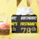 Este diseño de papel envolvente incluye un mensaje como "¡CUMPLEAÑOS 78 DE FIRSTNAME!", en el que el "78" tiene un aspecto de color falso/imitación de color dorado, y con el nombre y el "CUMPLEAÑOS" en un tipo de letra divertido y audaz. El nombre se puede personalizar y el fondo es negro de color. El envolvimiento de papel como este podría ser usado cuando se le dan regalos de cumpleaños a alguien en celebración de sus setenta y ocho años. [~Z0000203]