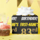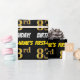 Este diseño de papel envolvente incluye un mensaje como "¡NOMBRE PRIMERO ES EL 83 CUMPLEAÑOS!", mientras que el "83" tiene un aspecto de color falso/imitación de oro, y con el nombre y el "CUMPLEAÑOS" en un tipo de letra divertido y audaz. El nombre se puede personalizar y el fondo es de color negro. El envolvimiento de papel como este podría ser usado cuando se le dan regalos de cumpleaños a alguien en celebración de sus ochenta y tres años. [~Z0000203]
