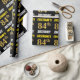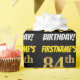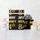 Este diseño de papel envolvente incluye un mensaje como "¡FIRSTNAME’S 84th BIRTHDAY!", en el que el "84th" tiene un aspecto de color falso/imitación de color dorado, y con el nombre y "BIRTHDAY" en un tipo de letra divertido y audaz. El nombre se puede personalizar y el fondo es de color negro. El envolvimiento de papel como este podría ser usado cuando se le dan regalos de cumpleaños a alguien en celebración de sus ochenta y cuatro años. [~Z0000203]