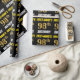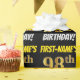 Este diseño de papel envolvente incluye un mensaje como "¡CUMPLEAÑOS 98 DE PRIMER NOMBRE!", en el que el "98" tiene un aspecto de color falso/imitación de color dorado, y con el nombre y el "CUMPLEAÑOS" en un tipo de letra divertido y audaz. El nombre es personalizable, y el fondo es negro de color. El envolvimiento de papel como este podría ser usado cuando se le dan regalos de cumpleaños a alguien en celebración de sus noventa y ocho años. [~Z0000203]