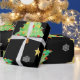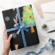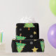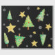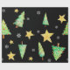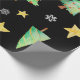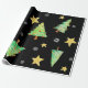 Papel de regalo muy inusual y único para tus regalos muy especiales. Los árboles de Navidad, copos de nieve y estrellas bailan sobre un fondo negro. Por Scarebaby Design.