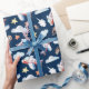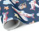 Divertido papel de regalo de aviación para niños, con aviones, estrellas y nubes sobre fondo azul marino. Perfecto para cumpleaños, baby showers, regalos de agradecimiento y mucho más.