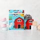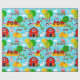 Cute Barnyard Farm Animal Birthday Party Kids Wrapping Paper. Un tractor divertido, granero, oveja, cabra, cerdo, vaca, pollo, criar papel de cumpleaños con temática animal.www.SamAnnDesigns.com