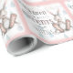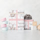 Papel de envoltura rosa bonito con un conejito adorable, un fondo de nubes y gotas de lluvia, y el verso de la biblia, "Los niños obedecen a tus padres en todas las cosas" tomado de los colossianos 3:20. ¡Perfecto para una ducha de bebé para una niña! Diseñado por Simply Scripture por Robin.