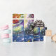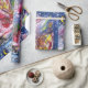 Pintura de acrílico colorida, caprichosa y artística, Santa está tocando arpa a la luz de la luna, búho, ornamentos florales, plantas de invierno, juguetes para niños, bayas huecas en colores brillantes rojo, verde, blanco, azul, amarillo. por Bulgan Lumini (c)