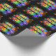 Este emocionante y divertido diseño de papel de envoltura con temática de cumpleaños presenta el mensaje "FELIZ CUMPLEAÑOS, CORA" con un colorido patrón de gradiente inspirado en el espectro del arcoiris, y un vibrante estallido de fuegos artificiales de celebración inspirado en el patrón de fondo. Papel envuelto vibrante como este podría ser usado cuando se preparan regalos para celebrar el cumpleaños de alguien llamado Cora. [~Z0000456]