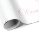 Elegante guión rosa sobre papel de envoltura personalizado de chica de fondo blanco. Perfecto para una fiesta de cumpleaños rosa.