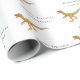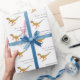 Papel de regalo divertido personalizado con nombre de niño feliz cumpleaños Dinosaurio velociraptor. Divertido patrón de Velociraptor dino Raptor con tipografía moderna blanca