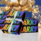 Este diseño divertido y emocionante de papel de regalo multicolor presenta el nombre común "LARRY" con un patrón de colorido gradiente de espectro de arcoíris. El fondo es de color negro. Papel de regalo emocionante como este podría ser divertido usar al dar un regalo o presente a alguien llamado Larry.