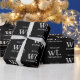 Papel De Regalo Nombre monogramado mínimo moderno en blanco y negr