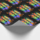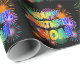 Este divertido y vibrante diseño de papel de envoltura con temática de cumpleaños tiene el mensaje "FELIZ CUMPLEAÑOS, NOAH" con un colorido patrón de gradiente inspirado en el espectro del arcoiris, y un emocionante estallido de fuegos artificiales de celebración inspirado en el patrón de fondo. Papel de envolver divertidos como este podría ser usado cuando se preparan regalos para celebrar el cumpleaños de alguien llamado Noah. [~Z0000456]