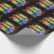 Este divertido y vibrante diseño de papel de envoltura con temática de cumpleaños tiene el mensaje "FELIZ CUMPLEAÑOS, PAIGE" con un colorido patrón de gradiente inspirado en el espectro de arcoiris, y un emocionante y reventado patrón de fondo inspirado en fuegos artificiales de celebración. Un papel de envolvimiento excitante como este podría ser usado cuando se envuelven regalos o regalos que se dan para celebrar el cumpleaños de alguien llamado Paige. [~Z0000456]