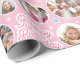 ¡Celebra un cumpleaños especial con el envoltorio de regalo de fotos de los personalizados! Esta plantilla linda y elegante está personalizada con el nombre, edad y seis fotografías favoritas de tu hijo. Un papel de envoltura sin fisuras, con marcos de imagen redondeados, con un globo y estrellas. Colores impresos: rosa claro, rosa dulce, turquesa y blanco.