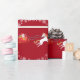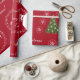 Elegante y adorable Navidades personalizados envolviendo papel con Santa en el trineo tirado por un unicornio con purpurina dorado y rojo en su mané y cola, varios copos de nieve y árboles de Navidad decorados con baudias plateadas. Perfecto para los niños pequeños, sobre todo las niñas que gustan de los unicornios. Con el saludo "Feliz Navidad / Emma!" en escritura cursiva / caligrafía. Asegúrese de que personaliza el nombre. En un fondo rojo de Navidad.