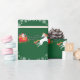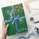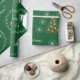 Elegante y adorable Navidades personalizados envolviendo papel con Santa en el trineo tirado por un unicornio con purpurina dorado y rojo en su mané y cola, varios copos de nieve y árboles de Navidad decorados con baudias plateadas. Perfecto para los niños pequeños, sobre todo las niñas que gustan de los unicornios. Con el saludo "Feliz Navidad / Emma!" en escritura cursiva / caligrafía. Asegúrese de que personaliza el nombre. En un fondo verde de Navidad.