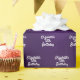 Hojas de papel elegantes, clásicas y de moda para el fiesta. Un fondo morado profundo, texto blanco. El color púrpura es desigual. Personalice y agregue un nombre y una edad.