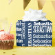 Papel De Regalo Nombre SEBASTIANO Blanco En Azul