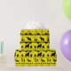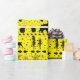 Papel de envoltura de vacaciones neutro con un patrón de suéter nórdico negro y amarillo brillante de animales de invierno.