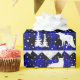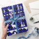 Un elegante papel de envoltura de vacaciones neutras con un patrón nórdico de animales de invierno de suéter en blanco sobre un fondo profundo azul y negro de manteca de búfalo.
