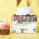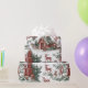 Vintage toile art in rich red and pine green shows a woodland village scene with deer, cabins, and playful figures. The classic storybook look brings cozy nostalgia to your holiday gift wrap, beautiful for presents under the tree and festive styling across your décor.