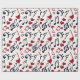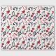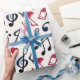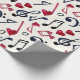 Papel De Regalo Notas Musicales Negras y Rojas Sobre Blanco