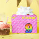 Este diseño de papel de envolver alegre y festivo de 9 años presenta un gran número de "9" con un patrón colorido inspirado en el aspecto de un espectro arcoiris. También incluye el mensaje "Feliz noveno cumpleaños", seguido de un nombre personalizado. El fondo está decorado con rayas rosas oscuras y rosas claras que contienen formas cariñosas de corazón rosado. Papel de envoltura con temas de cumpleaños como este puede ser una manera divertida de envolver un regalo o regalar un regalo para celebrar el noveno cumpleaños de alguien. [~Z0000415]